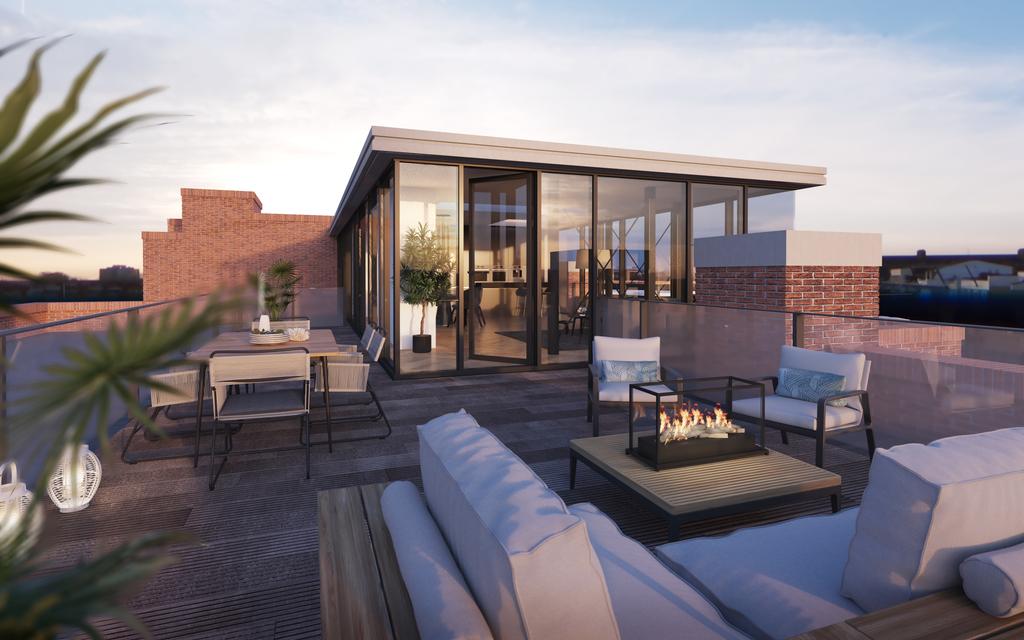 Upon entering, you are welcomed into a bright, spacious living room with a lovely fireplace where you can enjoy after a long day. The kitchen is fully equipped with high-quality built-in appliances and provides direct access to the sunny garden by the water—perfect for relaxation and outdoor dining.