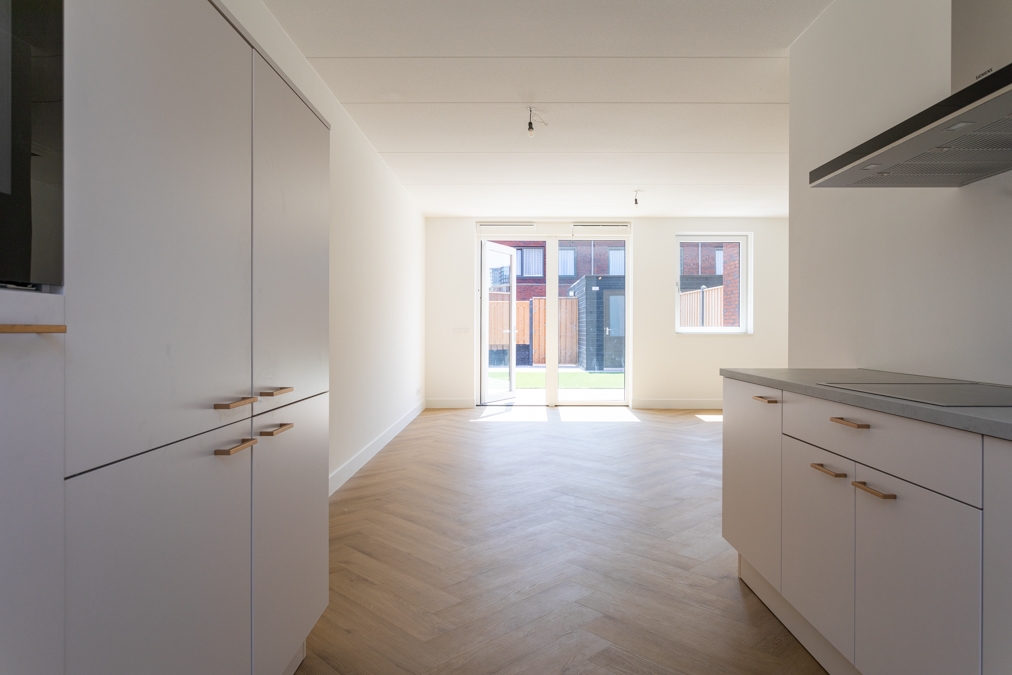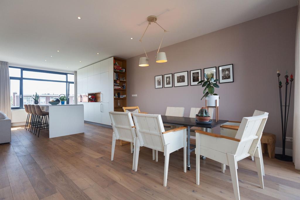 Common entrance, private elevator access to the apartment on the 2nd floor. Hall with (guest) toilet. Spacious and stylish decorated living with a great view over the canal. Modern open plan kitchen with cooking island with several equipped appliances. Pantry with washing machine and dryer. Master bedroom with detached bath tub and wardrobes, luxurious bathroom with shower and toilet. Second bedroom with en suite bathroom with shower and toilet. Wide balcony facing southwest. The apartment has airconditioning. Separate storage in the basement and a parkingplace is optional.