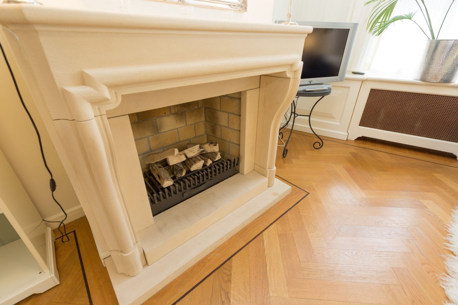 Private entrance at street level, good sized hall with stairs to the first floor. Living/ dining with stunning fire place and beautiful parquet floor. Semi open kitchen with all appliances.