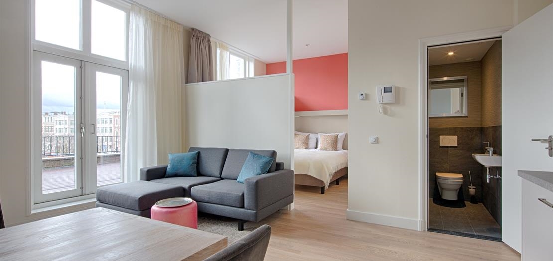 All apartments have a living room, (semi) closed sleeping area, a luxurious and modern open kitchen, as well as a beautifully tiled bathroom. Each apartment has its own theme. The floors are accessible by elevator. Some houses have a spacious, sunny balcony.