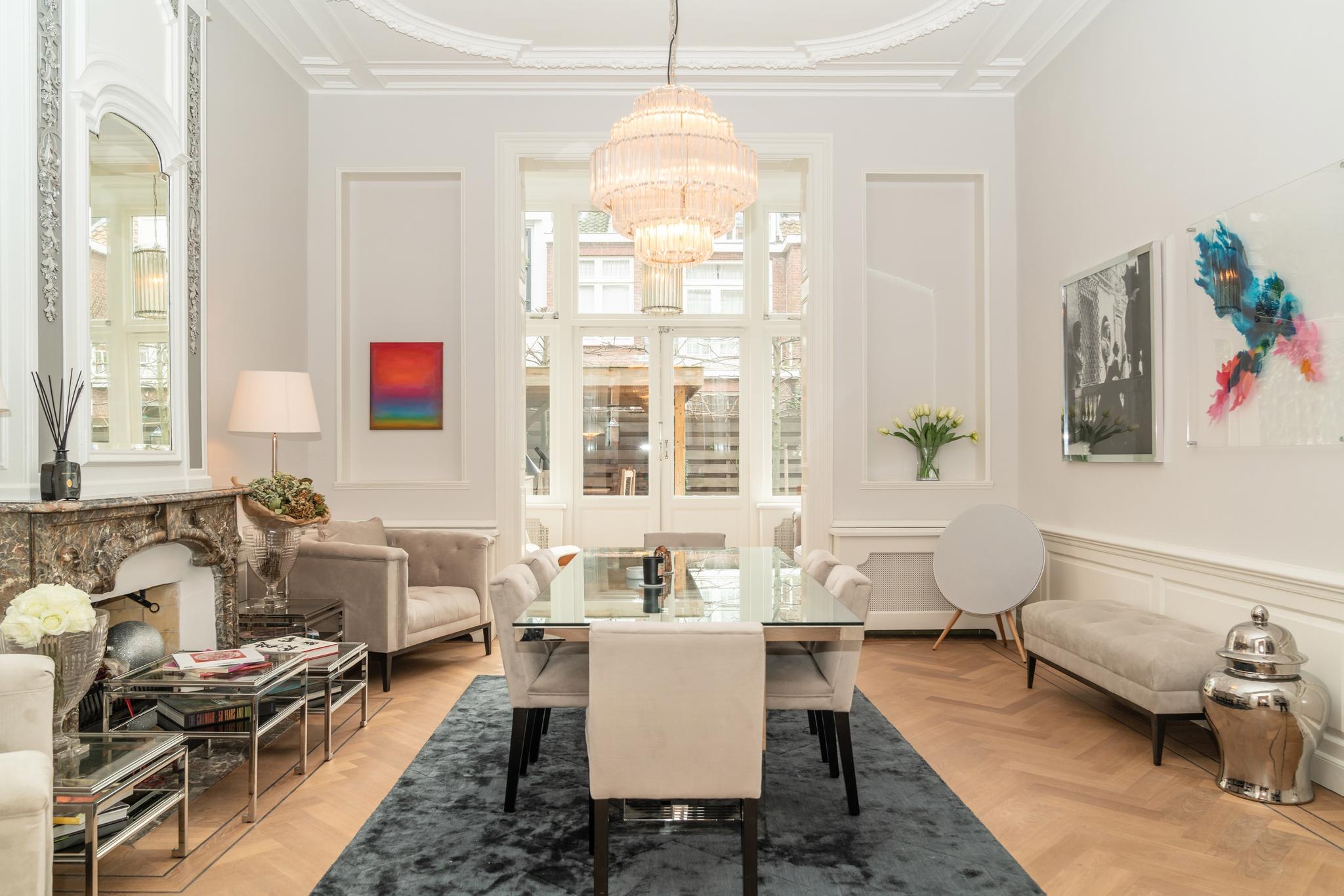 Located on the edge of the highly sought-after Archipel neighbourhood, a short walk from the Vredespaleis,this beautiful 3-storey, extra wide mansion, built in 1880 and fully renovated in 2018. Itoverlooks the Prinsevinkenpark, with a sheltered city garden (southeast) over the full width. The house has adoublereception hall, aunique wide hall, dining kitchen, 7 (bed) rooms, 2 bathrooms witha living area of approximately 380 m². Very good condition and tastefully renovated to maintain original features, with high ceilings, parquet floors & Italian tiles throughout. The house is within walking distance of the Bankastraatshops for daily shopping, the Scheveningse Bosjes and the historic center of The Hague. It is only ten minutes by bike tothe beach and easily accessible by public transport (tram and bus) and car. Highways can be reached within 10 minutes and there are several schools in the area.