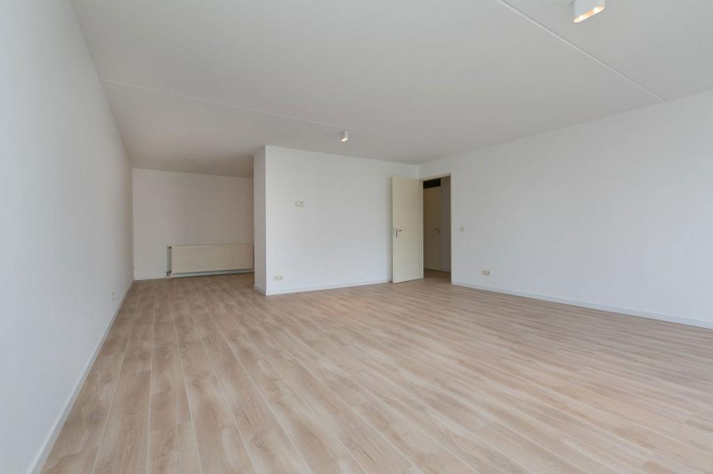 Gedeelde voordeur op straatniveau. Trap naar de eerste verdieping. Vanuit de gang toegang tot de vertrekken. Ruime stijlvolle woonkamer met toegang tot ruim balkon. Originele schuifseparatie geeft toegang tot de ruime slaapkamer aan de voorkant. Moderne keuken en badkamer en extra slaapkamer aan de voorkant.