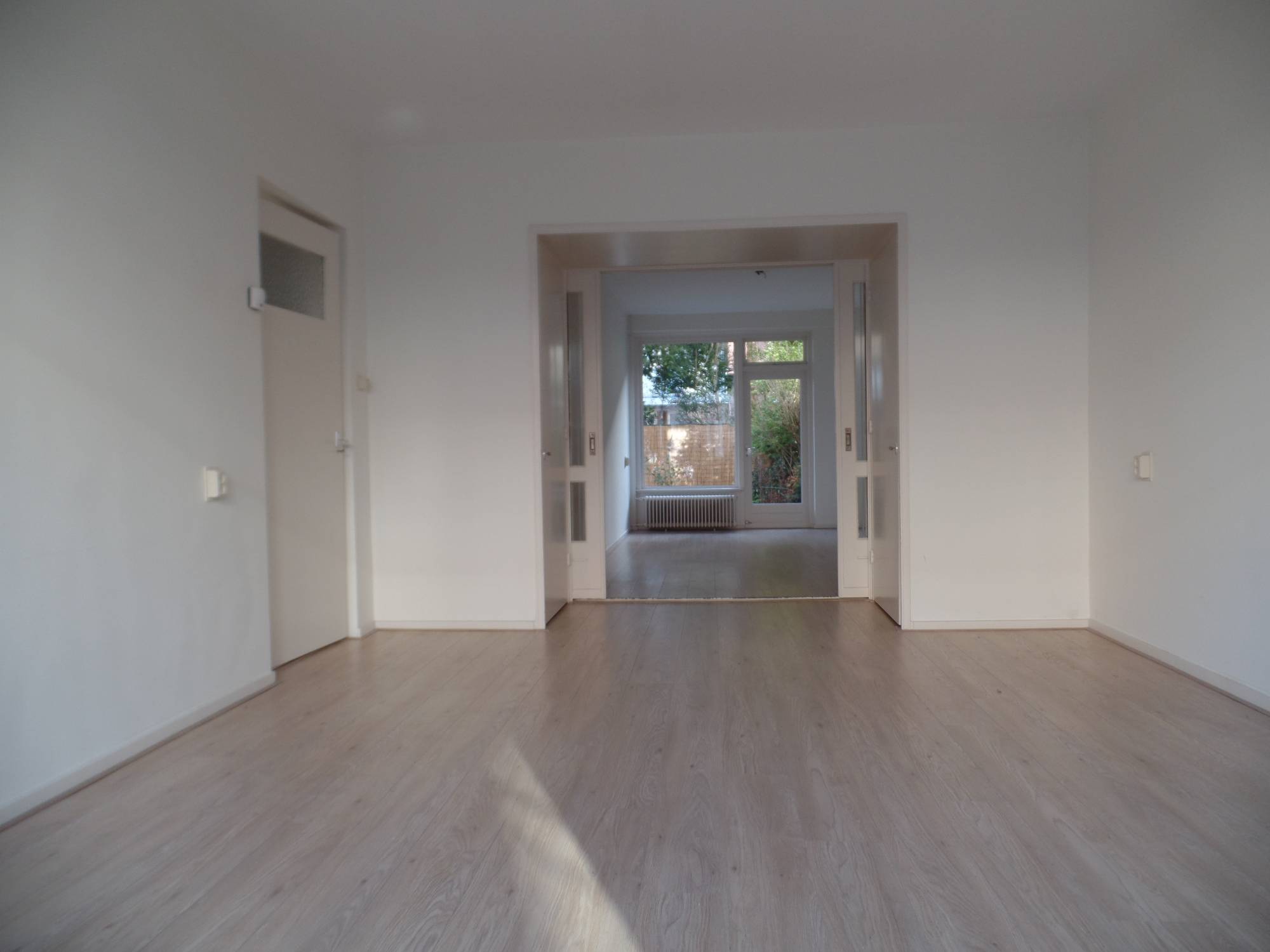 Woonkamer (6.39 x 3.88) met mooie ensuite deuren naar eetkamer (5.29 x 2.98) met inbouwkasten. Slaapkamer aan de voorzijde (6.39 x 3.86) en slaapkamer aan achterzijde (4.10 x 3.00). Keuken (3.91 x 1.80) met inbouwapparatuur zoals vaatwasser, gaskookplaat, oven, afzuigkap, koelkast. Badkamer (1.00 x 2.03) met douche en wastafel. Vanuit de eetkamer, keuken en slaapkamer aan de achterzijde heeft u toegang tot de ruime achtertuin (zuid-oost). Slaapkamers hebben inbouwkasten. Berging in de onderbouw.