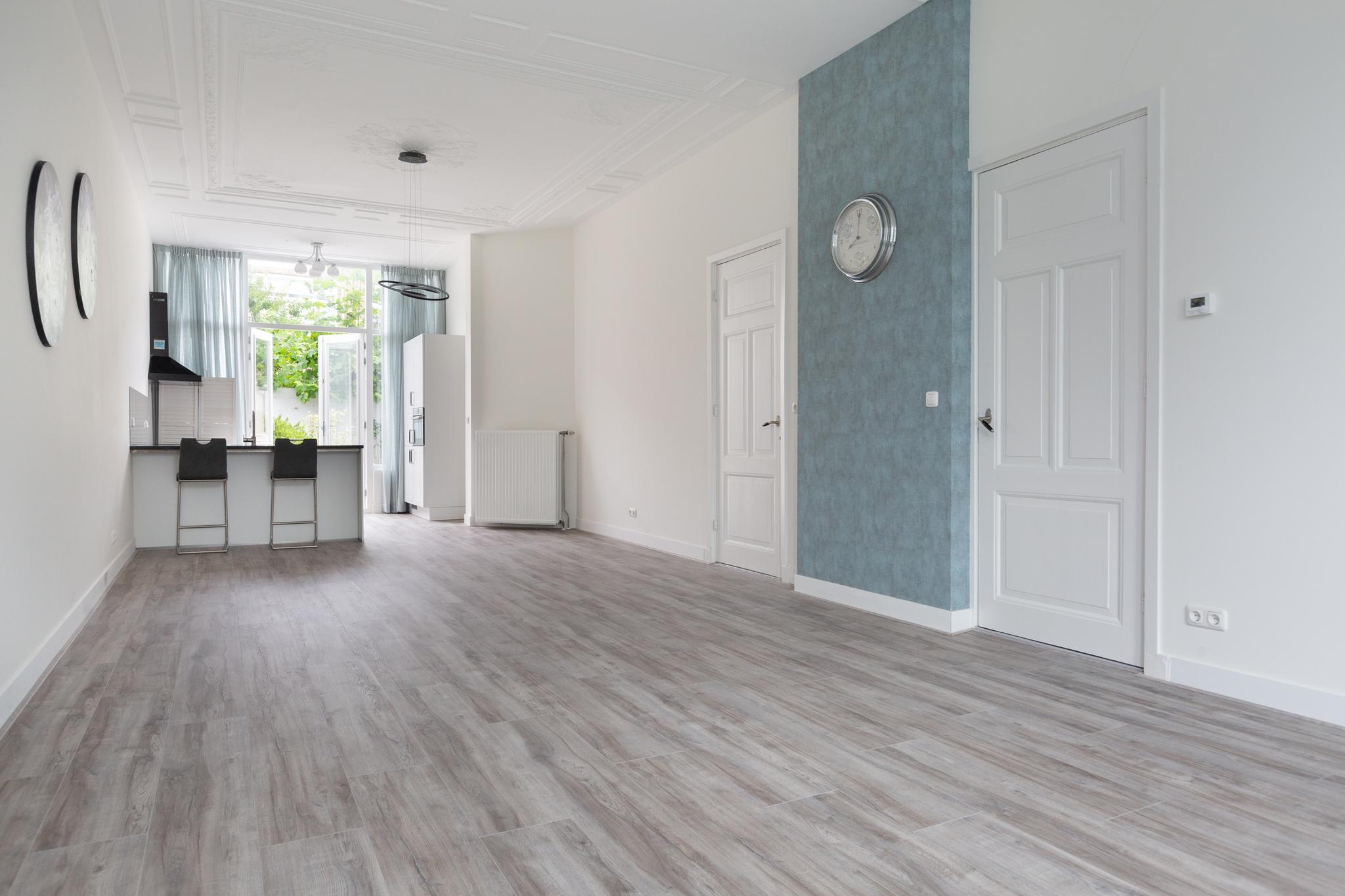 Dit prachtige en pas gerenoveerde appartement is gevestigd in het Geuzenkwartier in Den Haag. Het appartement is voorzien van een ruime woonkamer met een open keuken, tuin en 1 slaapkamer. In de woning zijn nog steeds originele details op het plafond te zien in de woonkamer en keuken. Achter de keuken zijn twee openslaande deuren richting de zeer ruime tuin. De tuin is volledig betegeld en is voorzien van een eettafel en stoelen. De woning beschikt ook over een kelder voor opslag.