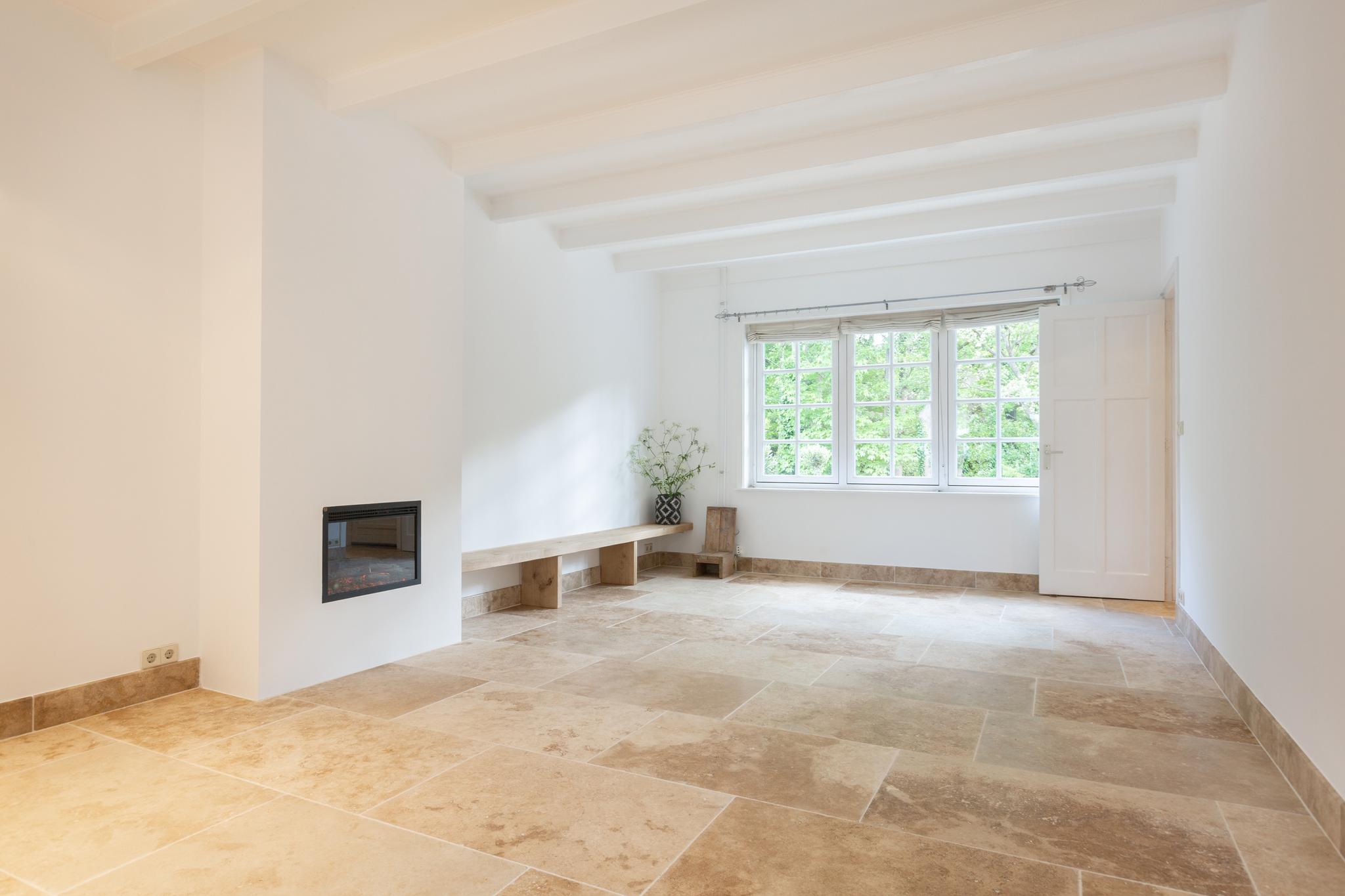 Ruime voor- en achtertuin. Hal met toilet. Grote woonkamer met open haard en open keuken, voorzien van diverse inbouwapparatuur. Openslaande deuren naar de achtertuin met schuur. Trap naar eerste etage. Drie slaapkamers waarvan een prachtig terras. Luxe badkamer voorzien van zwarte taatsdeur naar douche, ligbad, wastafel en zwevend toilet. Trap naar de vliering met veel bergruimte.